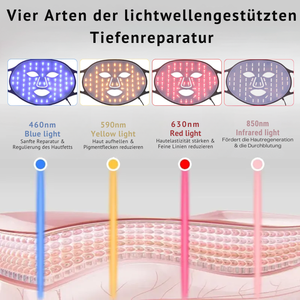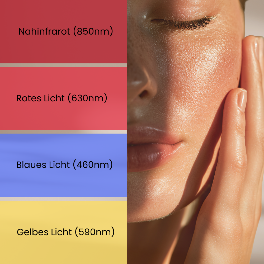 Rotes Licht (630 nm) – stimuliert die Kollagenproduktion, fördert die Zellregeneration und wirkt straffend.